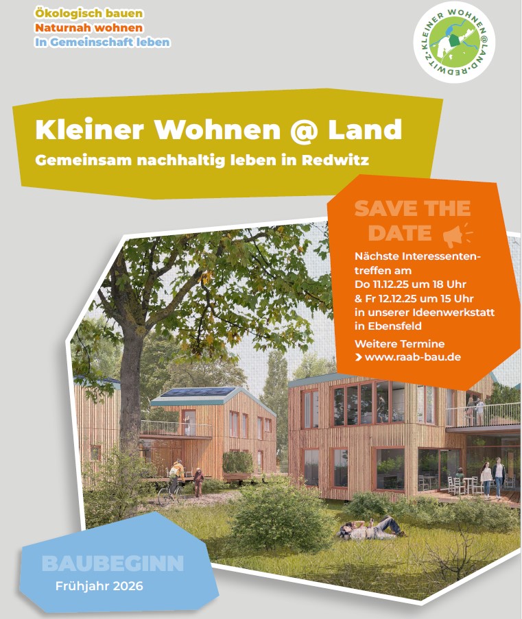 Die Gemeinde Redwitz an der Rodach entwickelt gemeinsam mit der RAAB Baugesellschaft ein innovatives Wohnprojekt für alle, die nachhaltig, naturnah und gemeinschaftlich leben möchten. In Kooperation mit der Hochschule Coburg entstehen hier moderne, ressourcenschonende Wohnkonzepte für junge Familien sowie Ein- und Zweipersonenhaushalte.
